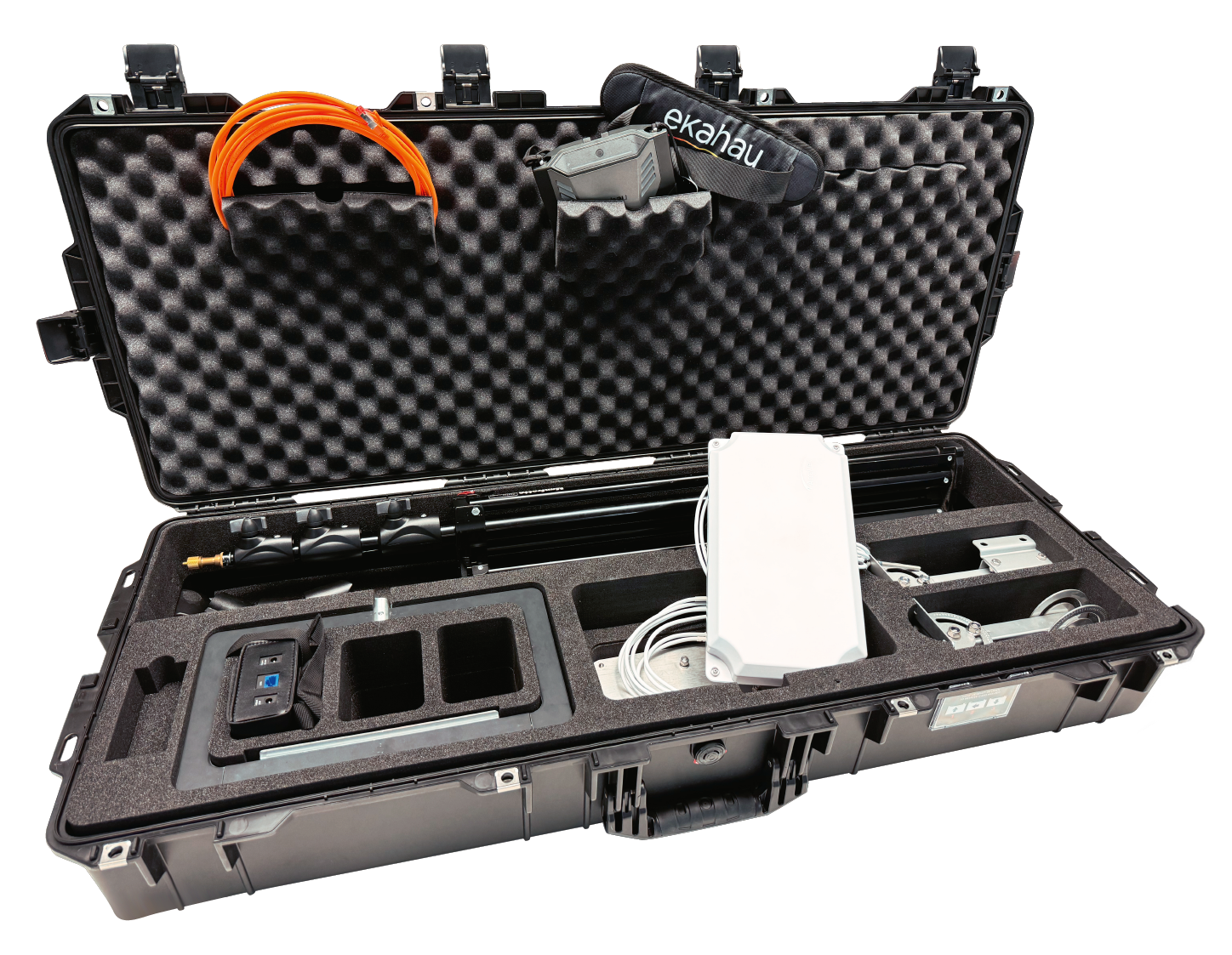 Der extrem robuste PELI-Transportkoffer kann mit bis zu 3 vollwertigen „AP on a stick“ Sets ausgestattet werden. Weiteres Zubehör für die WLAN Ausleuchtung vor Ort, wie externe Antennen, Notebook, Tablet und Messequipment finden Platz in dem geräumigen Koffer.