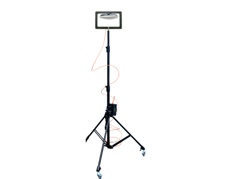 Leichtbau-Stativ (bis 3,70 m ausfahrbar), inkl. Rollen für einen einfachen Simulationsaufbaus