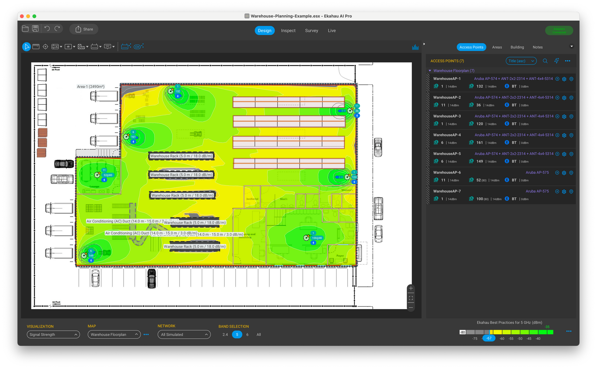 Ekahau AI Pro ist die leistungsstärkste Softwarelösung für Planung, Design, Optimierung und Fehlersuche in professionellen WLAN-Umgebungen. Entwickelt für IT-Administratoren, Netzwerktechniker und WLAN-Experten, bietet sie präzise Simulationen und umfassende Analysen auf Basis modernster KI-Algorithmen.