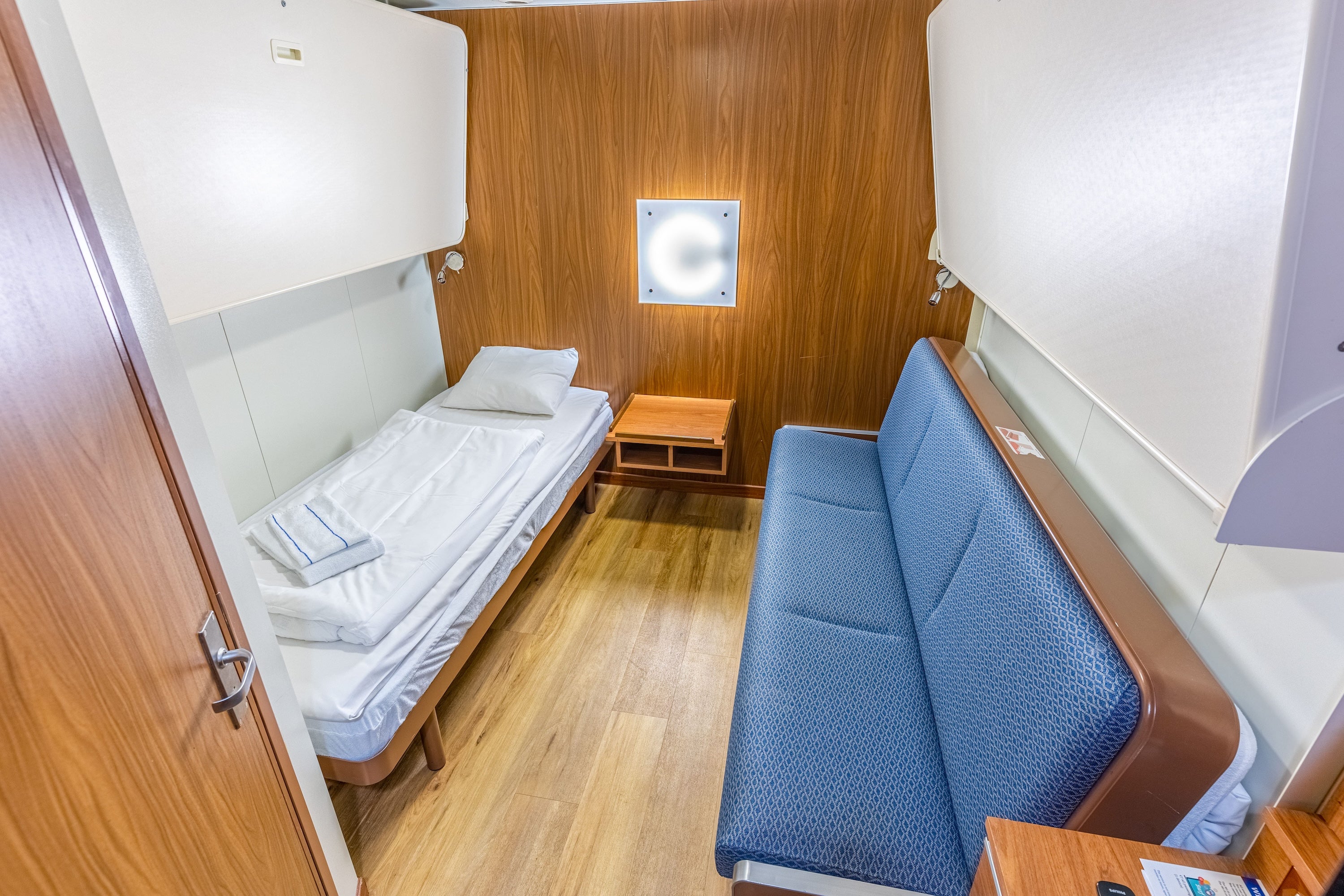 Im Preis ist die Übernachtung in einer Innenkabine während der Fährfahrt enthalten. Optional können Außenkabinen auf Anfrage gebucht werden.